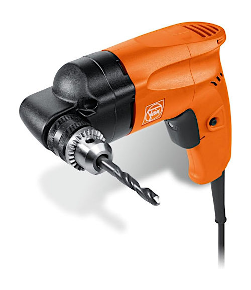 En un taladro angular el portabrocas está dispuesto a 90º del eje del motor. Por ejemplo, aquí puedes ver una imagen de un modelo de lo más exótico de Fein, fabricante alemán que introdujo el taladro eléctrico portátil.